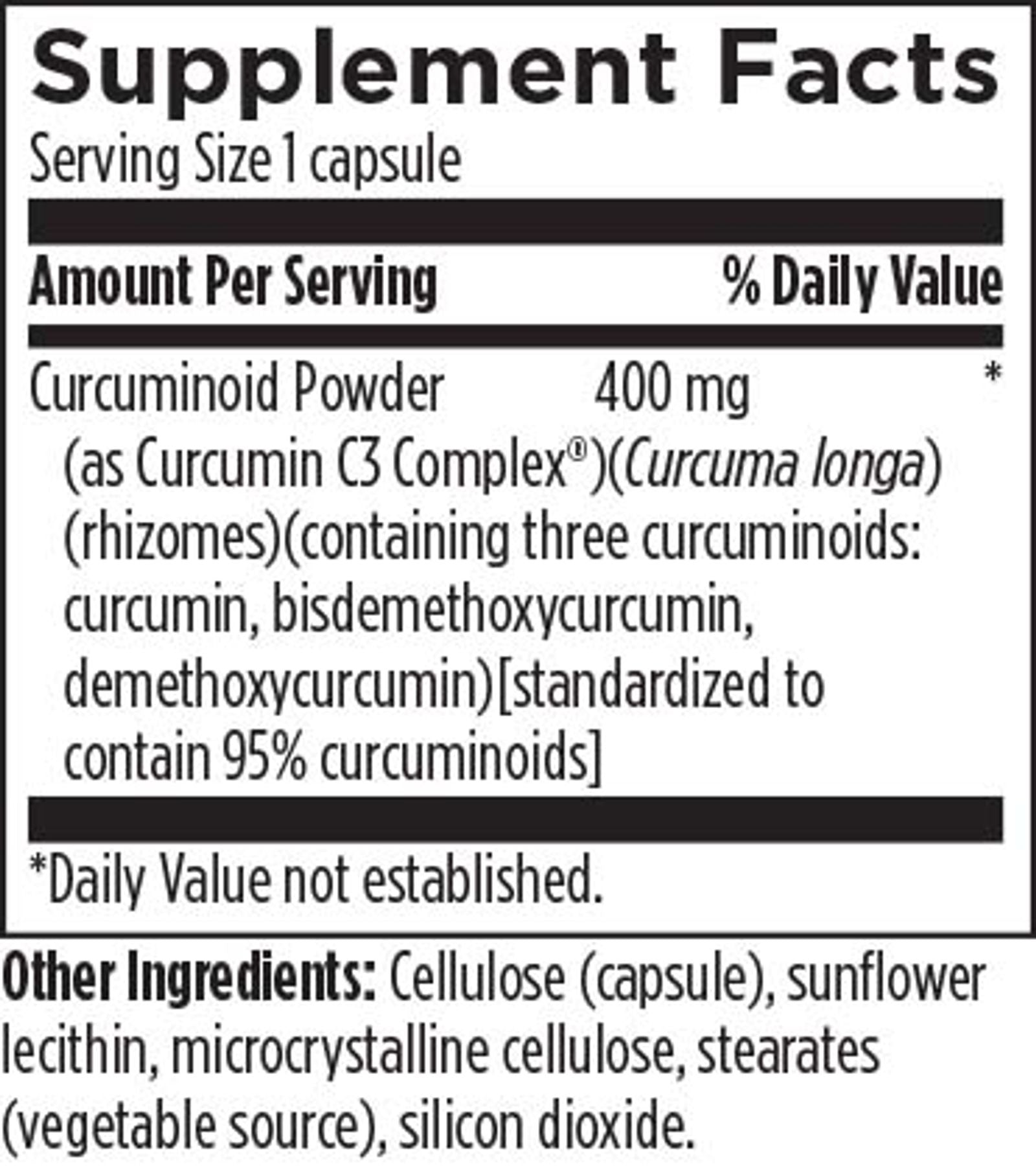 Provides 400 mg of curcuminoid powder per 1-capsule serving.