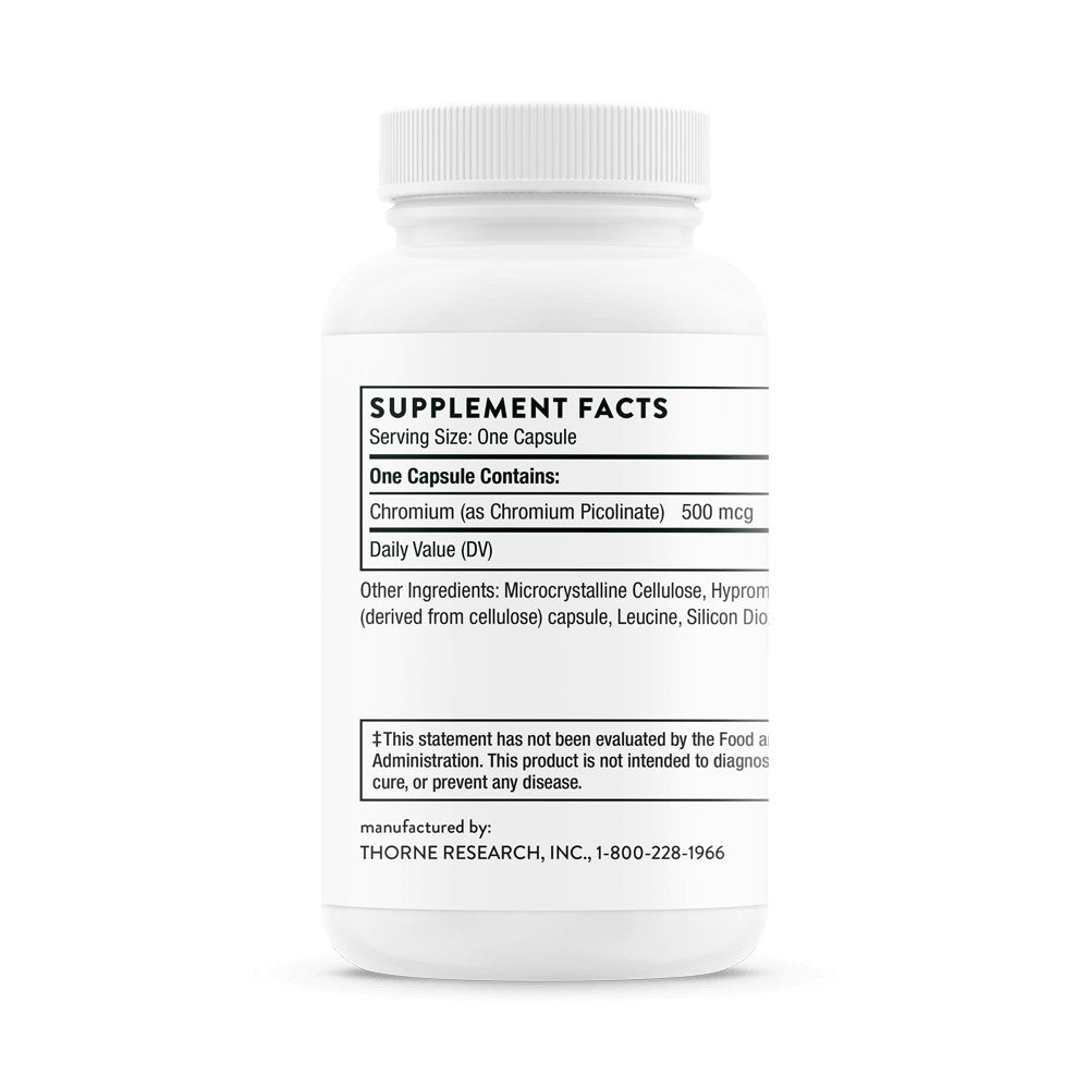Refined flour and refined sugar is significantly depleted of chromium. In addition, metabolic stress, strenuous exercise, and pregnancy can all increase chromium needs. Thorne's Chromium Picolinate provides chromium that is bound to picolinic acid, which facilitates its absorption, so you get chromium's full benefit.* Chromium in the form of picolinate has been widely studied for its support of blood sugar metabolism and insulin sensitivity.* Decreases in carbohydrate cravings have also been noted.* Other studies show chromium picolinate can increase lean-body mass in obese patients and enhance the effect of weight management efforts.